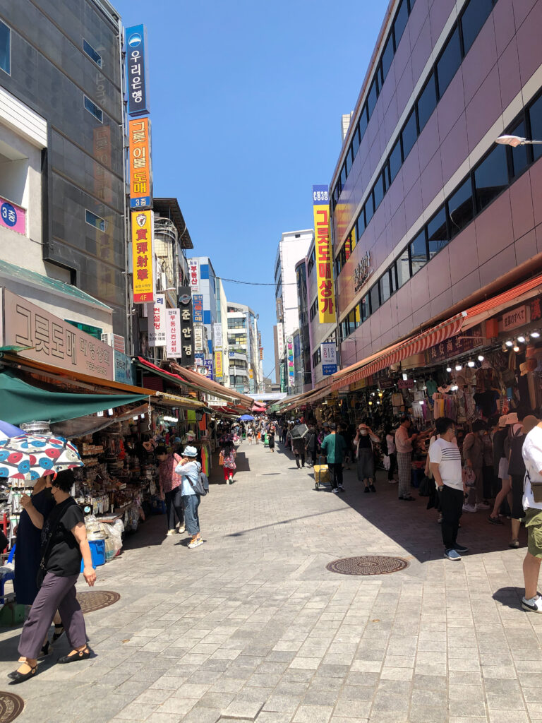 Descends ensuite vers Insadong, quartier arty-rétro idéal pour dénicher des souvenirs uniques. Ici, tu trouveras des calligraphies, des antiquités, des boutiques de souvenirs authentiques…et mon coup de cœur, le complexe Ssamziegil avec ses petites boutiques arty et colorées. Si tu veux faire une pause, les salons de thé ne manquent pas, tout comme l’étonnant musée du kimchi (parfait en cas de pluie).